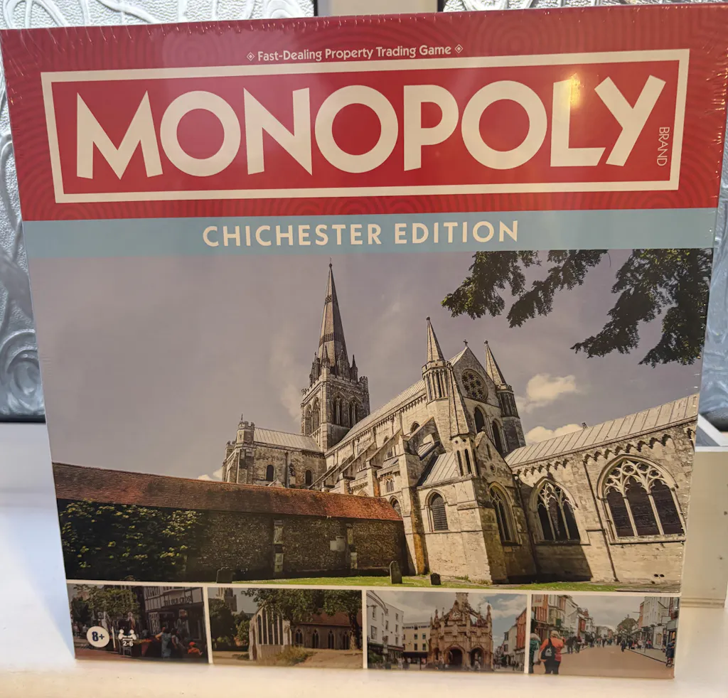 Winning Moves were able to give me an Iidea of when the Chichester Monopoly game would be finished and available to pre order. Because our families are from this West Sussex cathedral city, (old cicestians.),so we were over the moon that Winning moves were going to be designing the game. It was a bonus that it was delivered on the day of our son’s birthday, and the day it was going to be in stores to purchase for the first time.