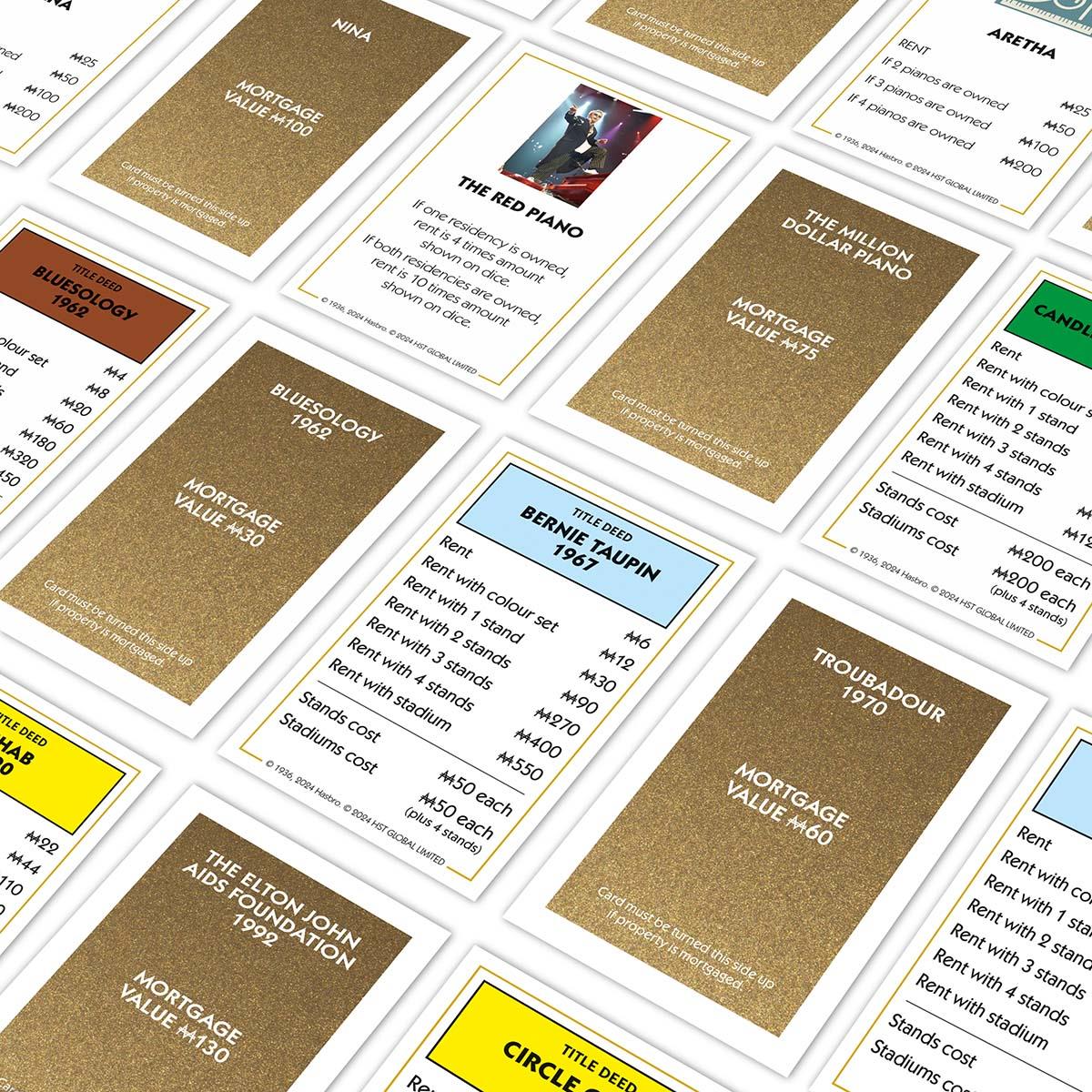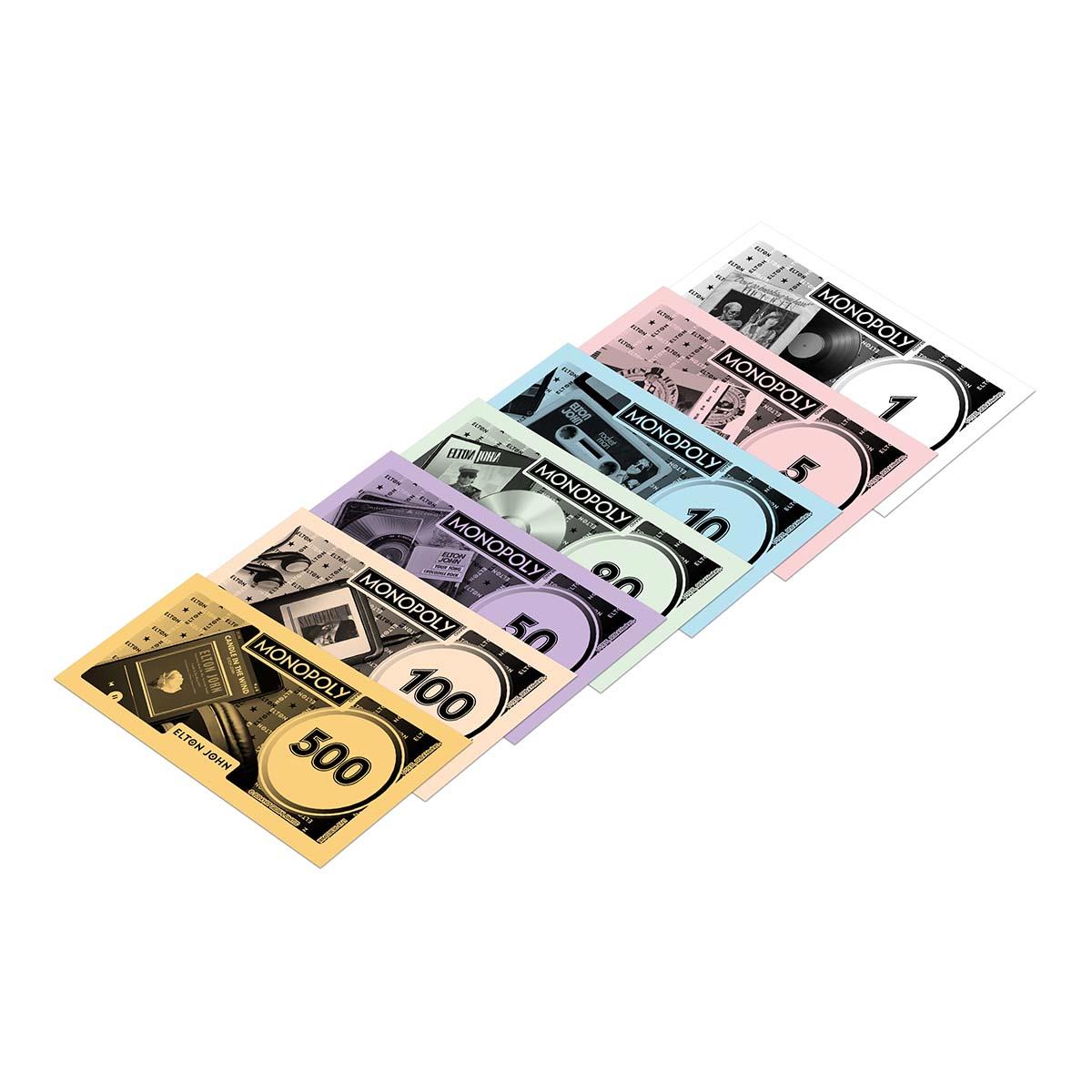 - BUILD YOUR ELTON JOHN EMPIRE: Buy up colour sets and use your Elton John music format themed Monopoly money to expand your empire by building Stands and Stadiums