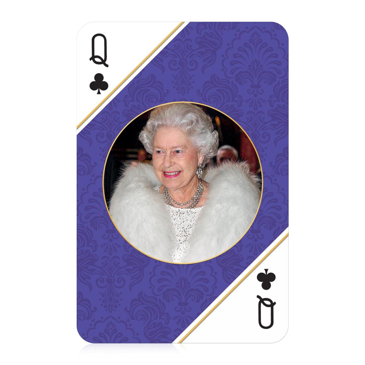 Commemorate the life and enduring legacy of Her Majesty Queen Elizabeth II with this magnificent new deck of Waddingtons Number 1 playing cards. HM Queen Elizabeth II is one of the UK’s and the Commonwealth's true heroes. Inspiring, reassuring and always in the hearts of the nation, the Queen has lived a remarkable life, facing good times and bad with grace and calm. Now you can capture the essence of this magnificent monarch and the rest of the British royal family with every card game, from Snap to Poker. Each card features high-quality photographs of some of the country’s most recognisable faces, like the Duke and Duchess of Cambridge, the Prince of Wales, and the Duke and Duchess of Sussex. This deck of cards is guaranteed to imbue any game of cards with pride, honour and cheer, and with its own distinct brand of charm and class, it’s truly fit for royalty.