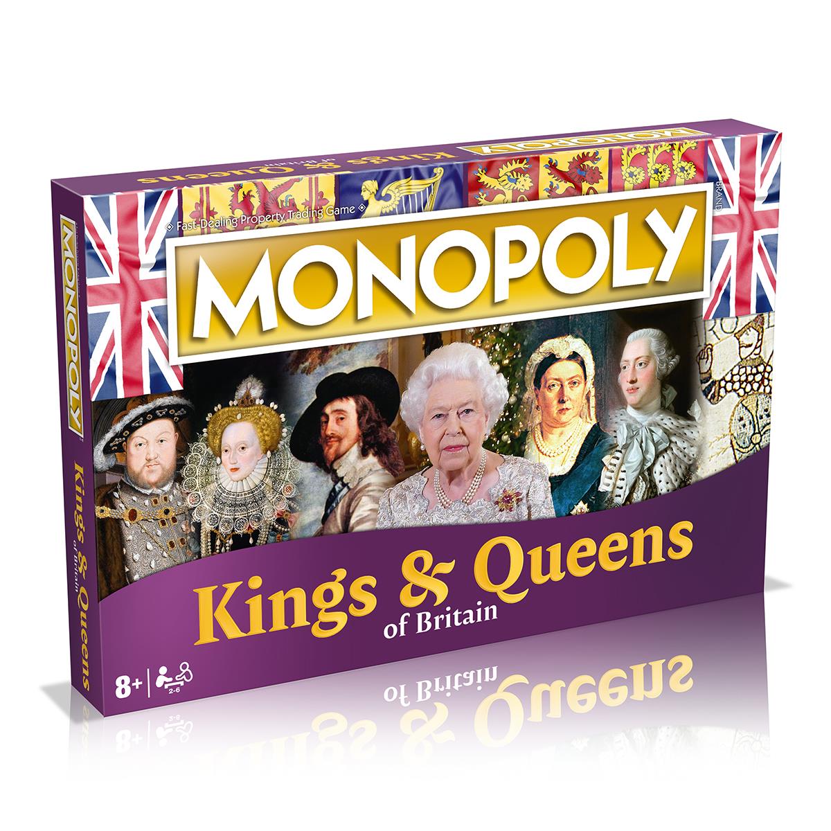 The British Isles have a rich and storied history, from ruthless invaders to scheming queens and unscrupulous kings. Uncover some of the influential monarchs that have shaped the United Kingdom and Ireland as we know them today, with this brand new edition of MONOPOLY: Kings & Queens. Take a journey through the past, buying up spaces modelled after Alfred the Great, Harold Godwinson and Ruaidrí Ua Conchobair, and trace the royal line down to Henry VIII, Victoria and Elizabeth II. Learn about key moments of British history through the decisions made by these monarchs relating to welfare, culture, warfare and more personal concerns. Pick up Chance and Treasury cards for royal boons and sanctions, and build castles and palaces to charge your opponents more rent. Who will be the first to expand their empire and quash their foes? "Uneasy lies the head that wears a crown", so don't delay: choose one of the right royal playing tokens, roll the dice, and begin a powerful dynasty of rulers, with MONOPOLY Kings & Queens.