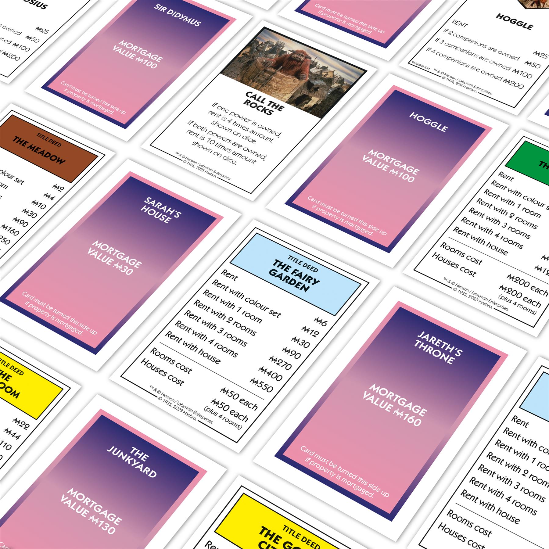 - BUILD YOUR EMPIRE: Buy up colour sets and use custom Monopoly money, branded by the Goblin King himself, to expand your empire with rooms and houses