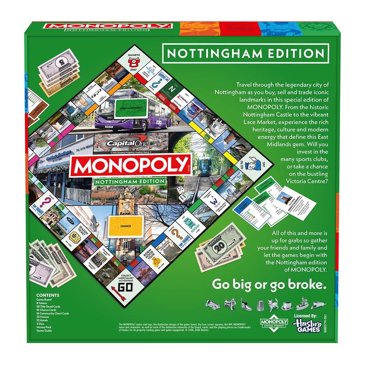 - PERFECT FOR NOTTINHAM FANS: This new Nottingham of Hasbro's classic board game Monopoly is perfect for 2–6 players and makes a great gift for fans aged 8 and up