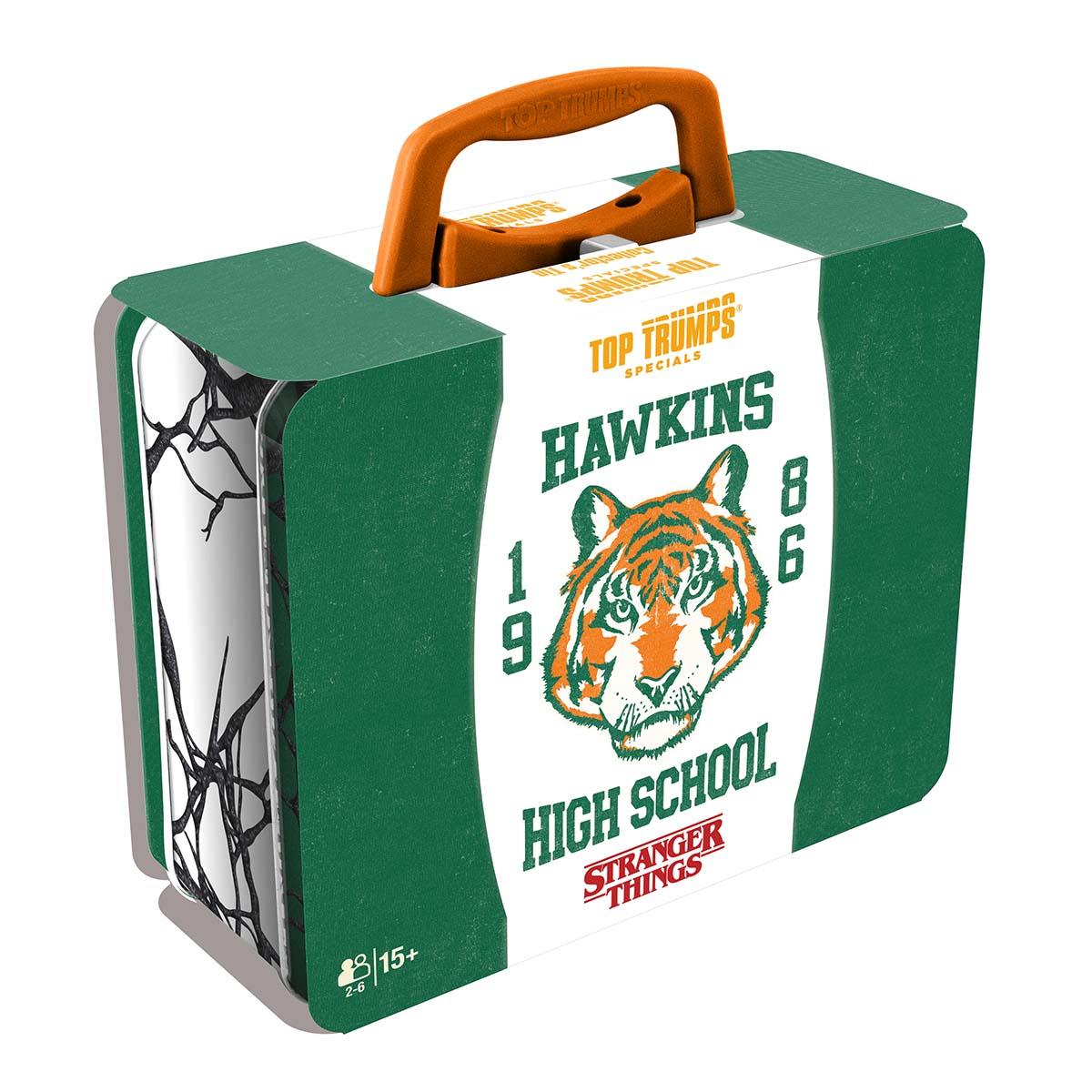 Inspired by the global hit Netflix series, Stranger Things, this Hawkins High School Top Trumps Collector's Tin is a must for fans. Inside you will find an exclusive Top Trumps pack based around the greatest scenes from Stranger Things, from the moment Eleven kills the Demogorgon, to Bob's Sacrifice, the Hellfire Club, and the Battle of Starcourt. Compete against your Top Trumps opponents with the help of Eleven, Billy, Dustin, Steve, Mike, Will, and the rest of the citizens of Hawkins, Indiana. Fans of Stranger Things merchandise can learn precisely where Vecna comes from, how Will communicates, and what happened to Barb in this unique edition of Top Trumps.