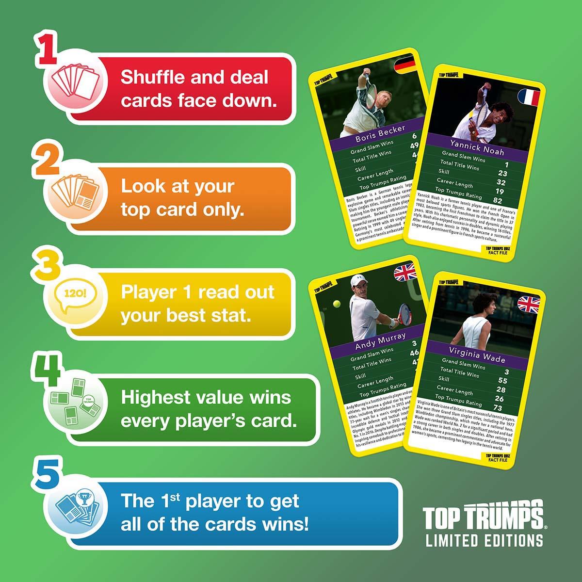 Are you ready to serve up excitement and test your tennis knowledge? The Top Trumps Tennis Stars Limited Edition Card Game is the ultimate collectable for tennis fans of all ages. Packed with legendary champions and rising stars, this fast-paced game lets you battle it out with real player stats, including Grand Slam titles, world rankings, career wins, and skill levels. From iconic legends like Roger Federer, Serena Williams, and Rafael Nadal to modern champions such as Carlos Alcaraz and Iga Świątek, every round brings thrilling comparisons and competitive fun. Whether you’re courtside, at home, or on the go, Top Trumps Tennis is the perfect travel-friendly game to entertain friends and family. Easy to play and endlessly replayable, it’s a must-have for tennis enthusiasts, collectors, and lovers of fun card games.